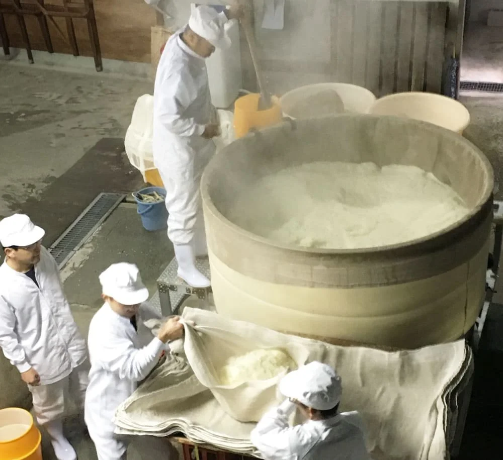 Mizumoto is the earliest recorded technique in sake production, predating both kimoto and yamahai methods. Mizumoto or "water starter" is a process by which the rice is first soaked in water to promote lactic acid fermentation. This soaking water is then saved and used as the brewing water for the production alongside the koji, soaked rice, and yeast. The fermentation time takes roughly 3 weeks to a month before the mash is pressed, filtered, heated, and subsequently rested in tanks for an additional 6 months to a year. Before bottling, water is added, and the sake is heated one more time. The Hitomebore is a table rice that has more fat and proteins that lend well to a lower polish (30% removed) and the mizumoto process. The result is a sturdy sake, strong in rich rice flavors that are balanced by an assertively dry acidity. Fantastic with richer foods! Pair this sake with soft ripe cheeses, grilled meat, katsu, and rich fish dishes.